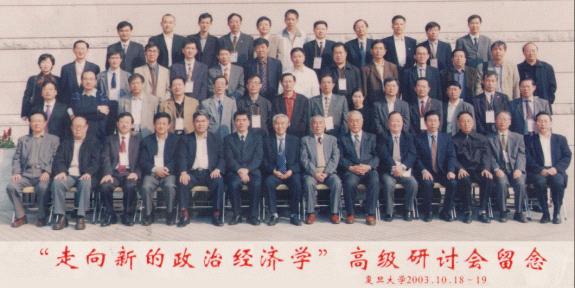 2003年10月18日到19日,复旦园迎来了中国经济学界的一次盛会,由复旦大学新政治经济学研究中心主办的“走向新的政治经济学”研讨会于在复旦大学隆重举行,来自国内外的老一辈及知名中青年经济学家、法学家和特邀嘉宾五十余人参加了本次研讨会。