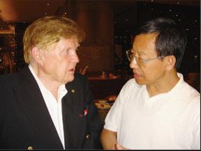 诺贝尔经济学奖得主道罗伯特·蒙代尔与史正富教授探讨学术问题。